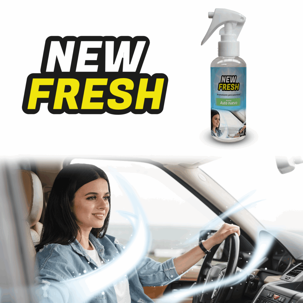 New Fresh es el aromatizante premium con aroma a “auto nuevo” que transforma cada trayecto en una experiencia fresca y placentera. Gracias a su avanzada fórmula encapsuladora, elimina de raíz incluso los olores más intensos como el del cigarro, comida o humedad, dejando un ambiente limpio, agradable y duradero en el interior de tu vehículo.